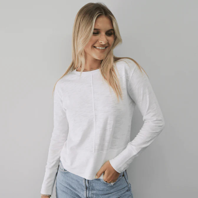 100% Pima Cotton Slub Fabric, exclusively made for erin gray. Not see-through. Pre-shrunk. Tagless. Packaged in bio-degradable bags. Made in Peru.