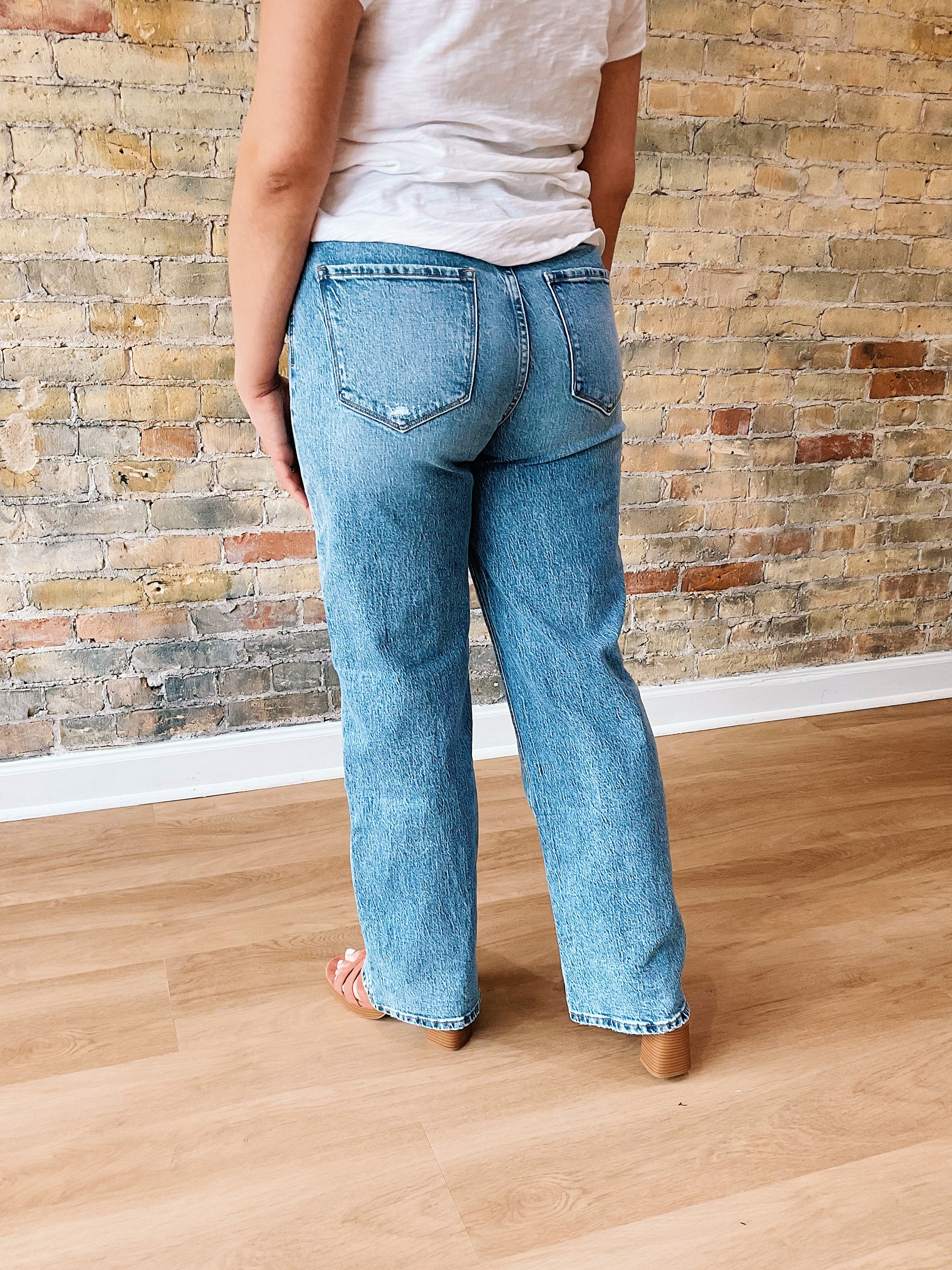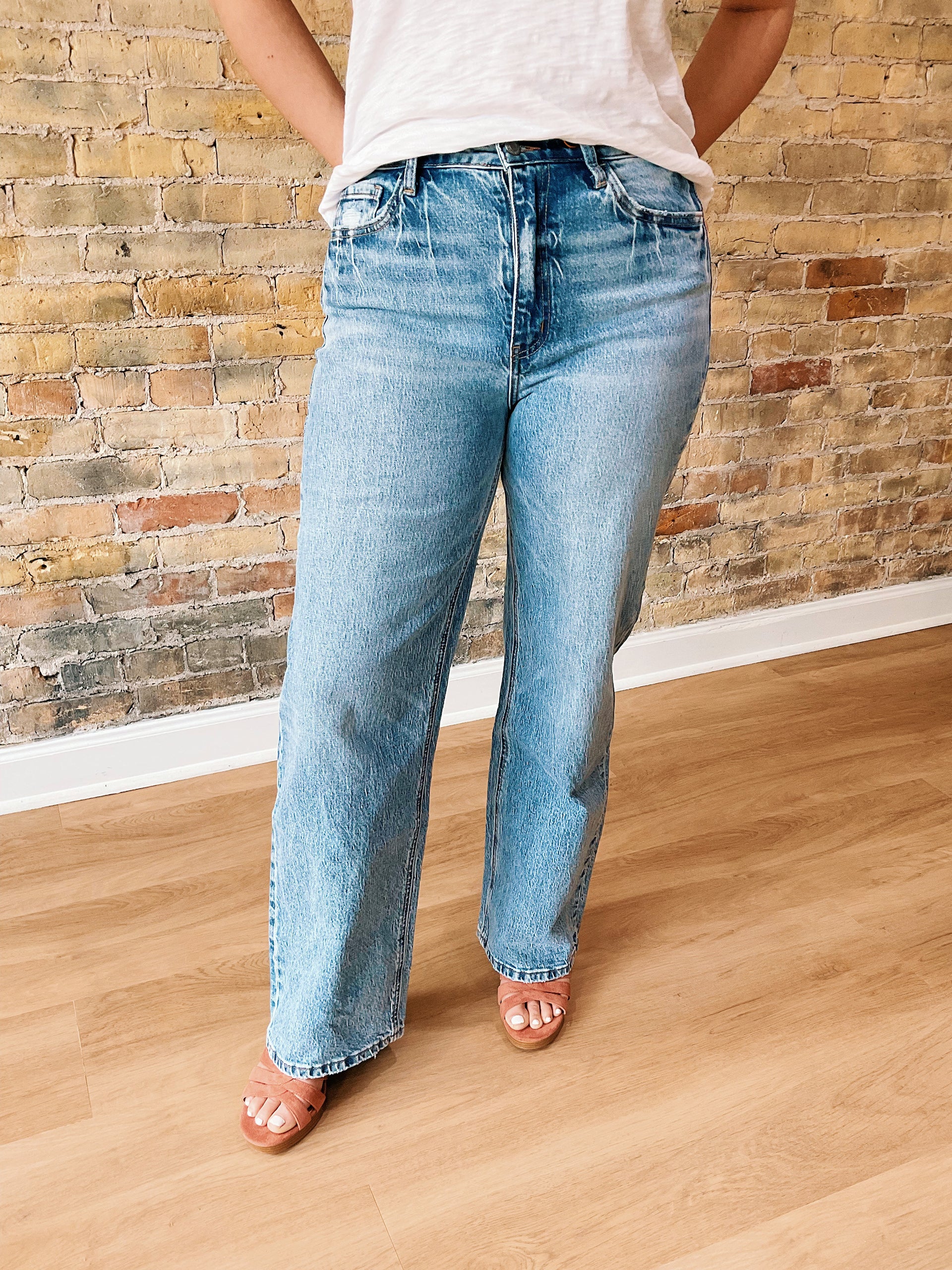 The Elise 90s Wide Leg jeans are perfect for those who want a high-waisted, comfy fit with a perfect wash. These jeans bring back the best of the 90s with a modern update. Step out in style and comfort with the Elise 90s Wide Leg jeans.