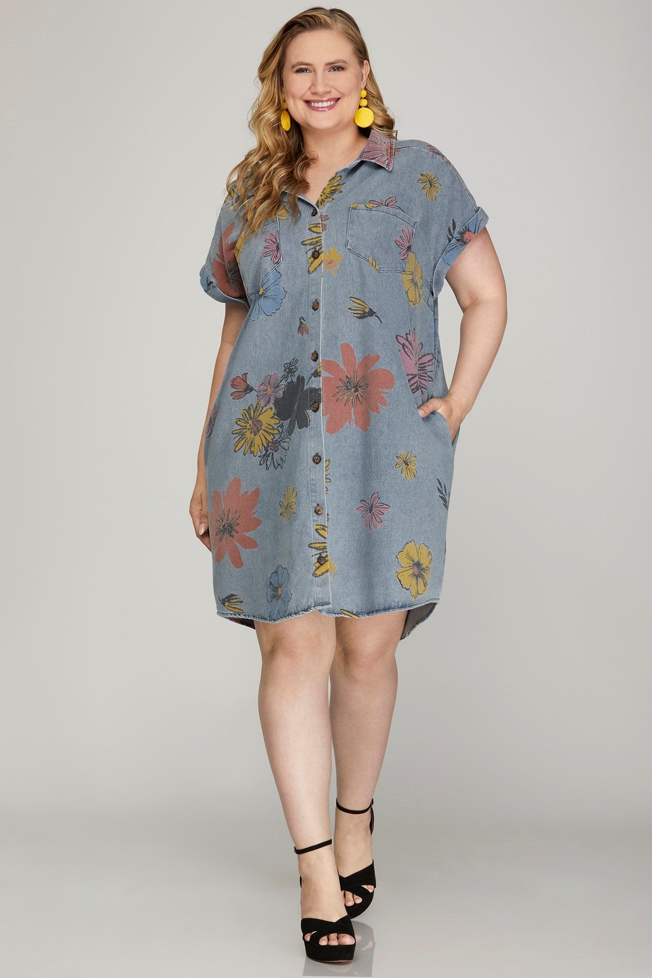 Say hello to easy-breezy summer style! The Daisy Mae Dress is a relaxed-fit, 100% cotton denim shirt dress with playful floral prints and side pockets for extra charm. Soft, breathable, and oh-so-fun — it’s the perfect grab-and-go look for sunny days. Available in sizes Small to 2XL.