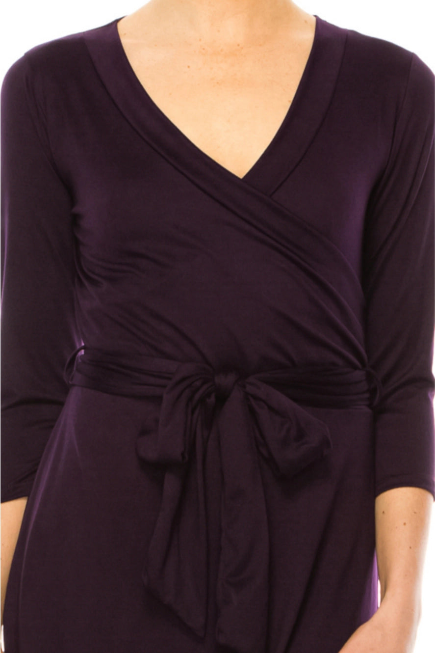 This Wrap dress is made from a blend of 95% polyester and 5% spandex, which gives it a comfortable stretchy feel while also providing durability and easy care.