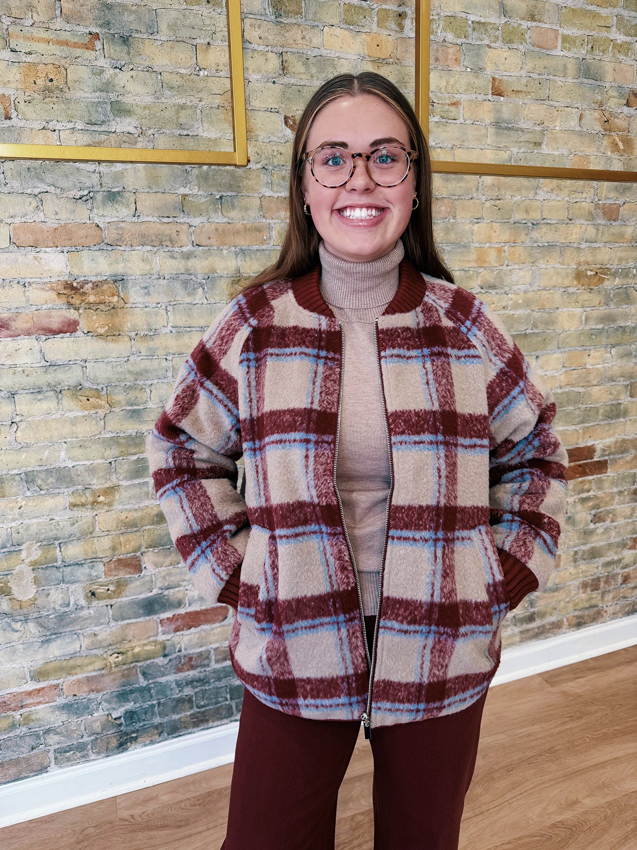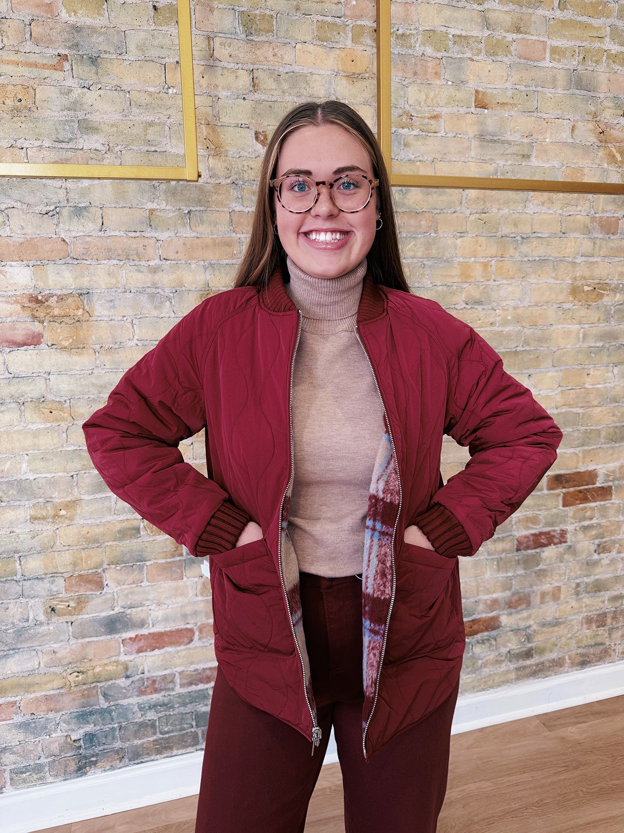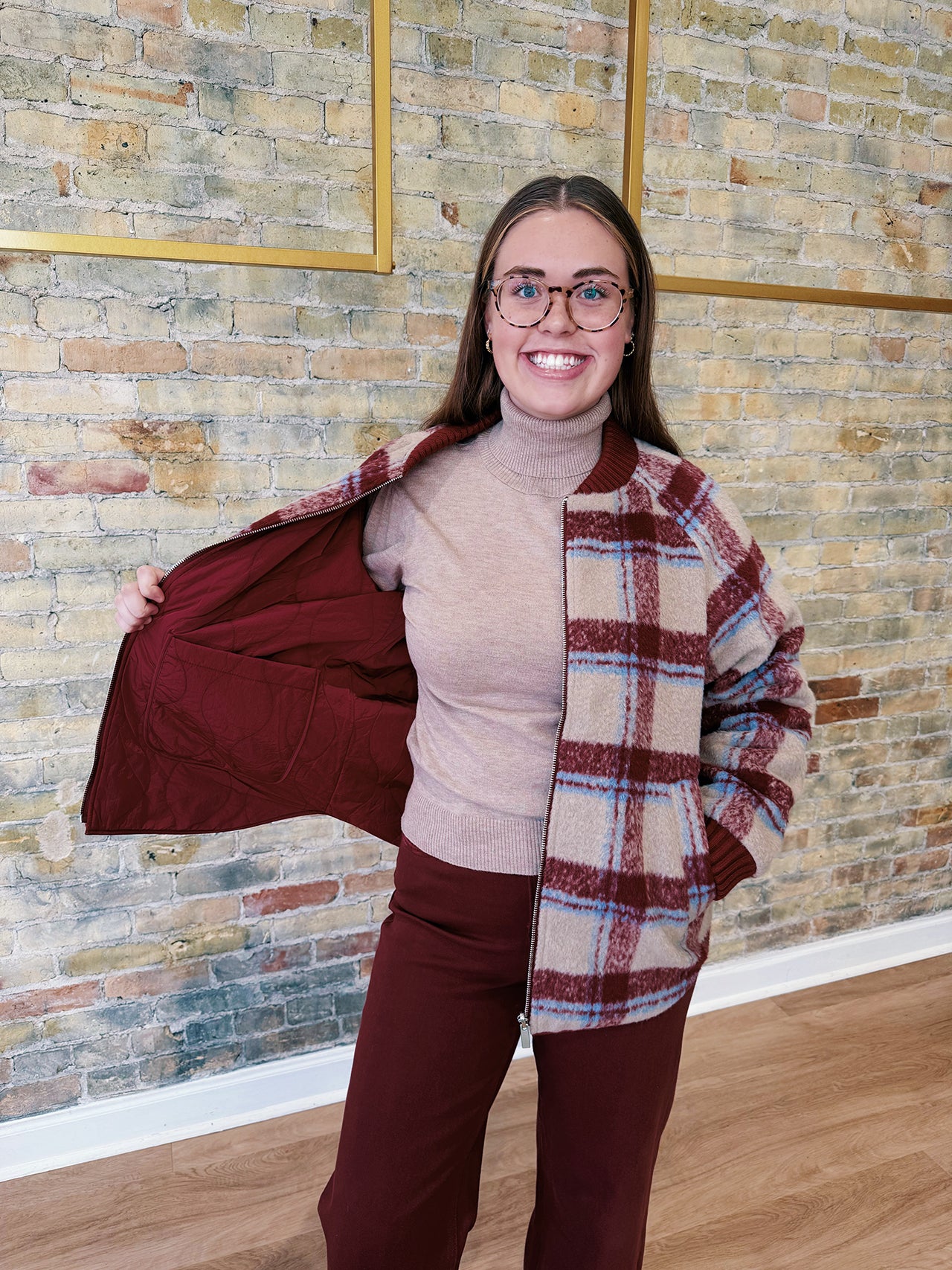 Why choose one look when you can have two? The Anniston Reversible Jacket by Flag & Anthem delivers versatility and style in one cozy essential. One side features a soft plaid design with slanted pockets and red ribbed accents, while the reverse showcases a rich quilted red finish with front patch pockets.