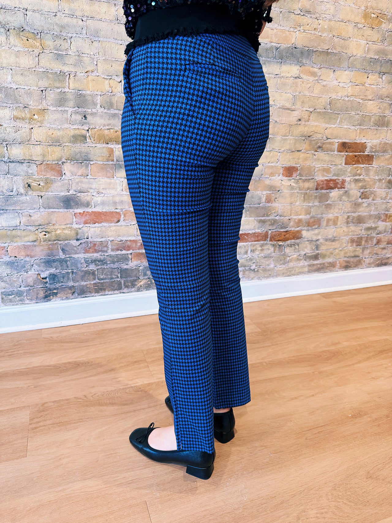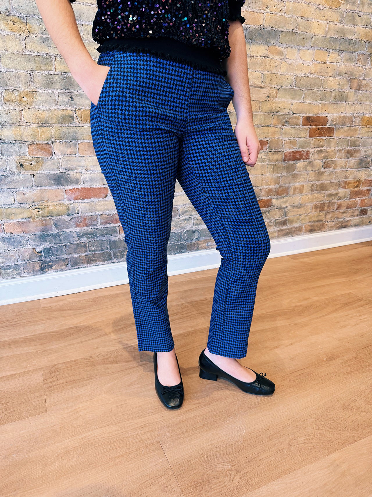 The classic houndstooth print brings sophistication, while the stretch waistband, side vents, and soft fabric blend ensure all-day ease. Finished with functional front and back pockets, the Ava Pant transitions seamlessly from casual gatherings to festive celebrations.