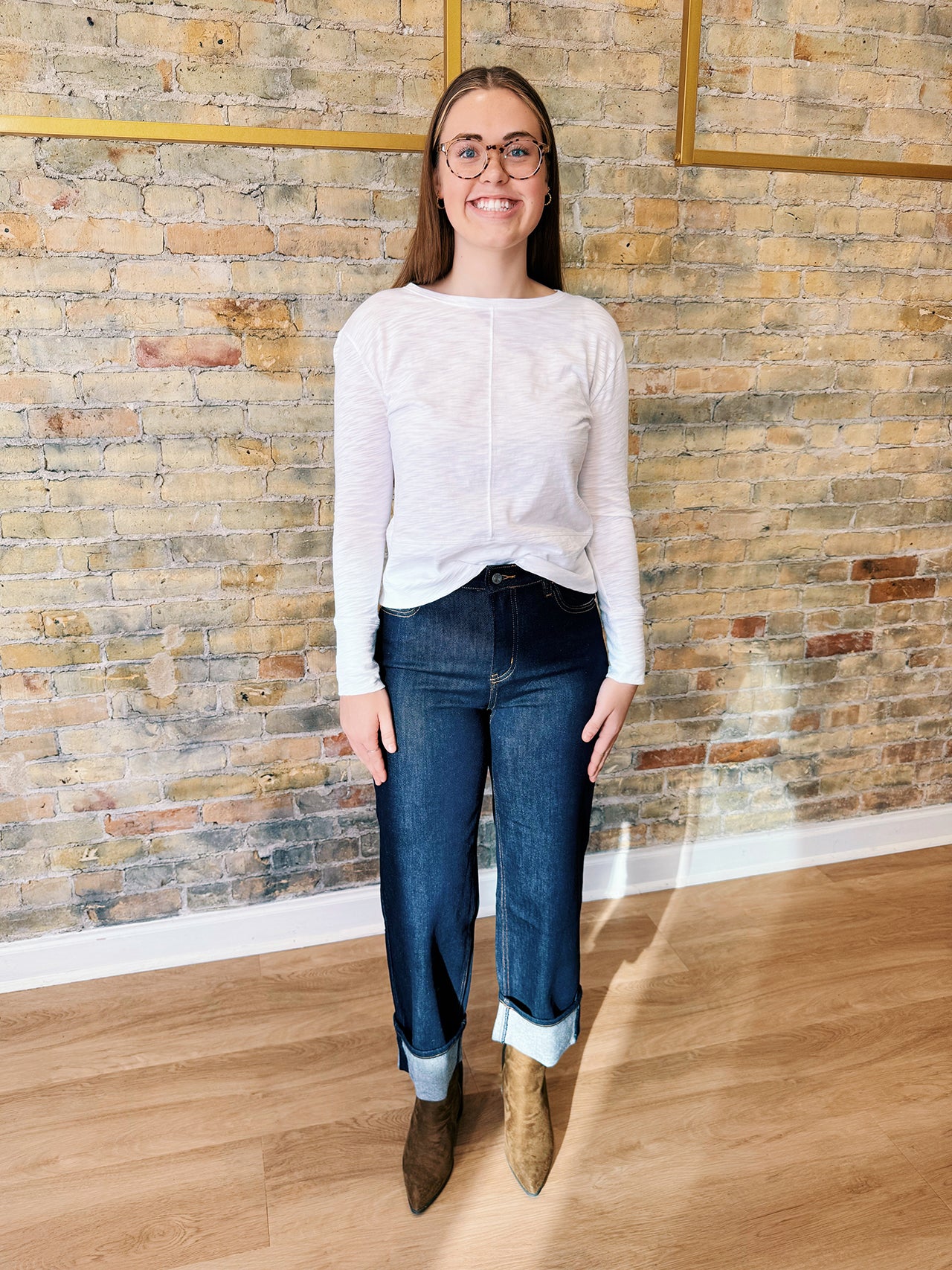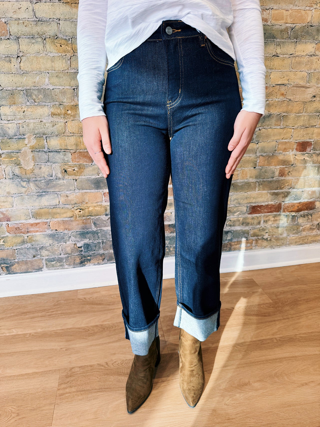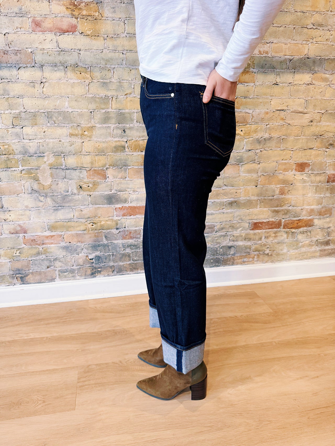 Crafted from medium-stretch denim in a classic dark wash, Clarissa is finished with a cuffed hem that adds a modern, effortless touch. Available in Regular and Curvy fits, these jeans are designed to provide a confident, comfortable fit across sizes.