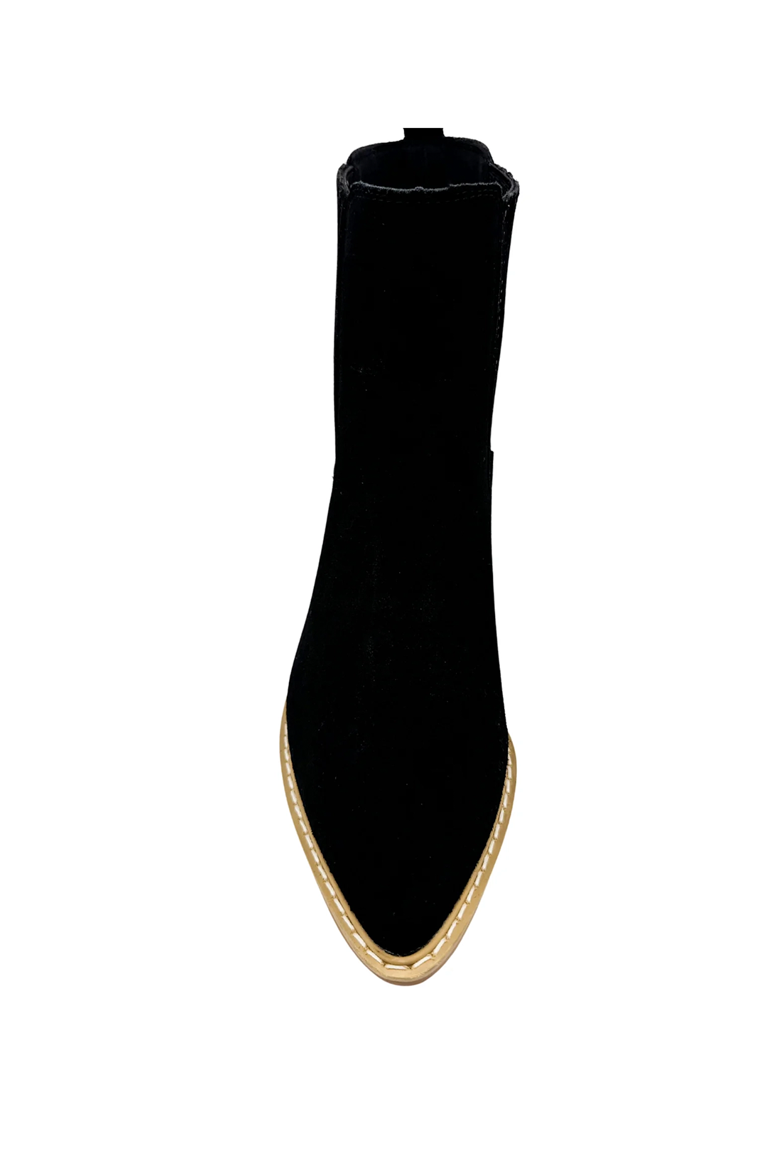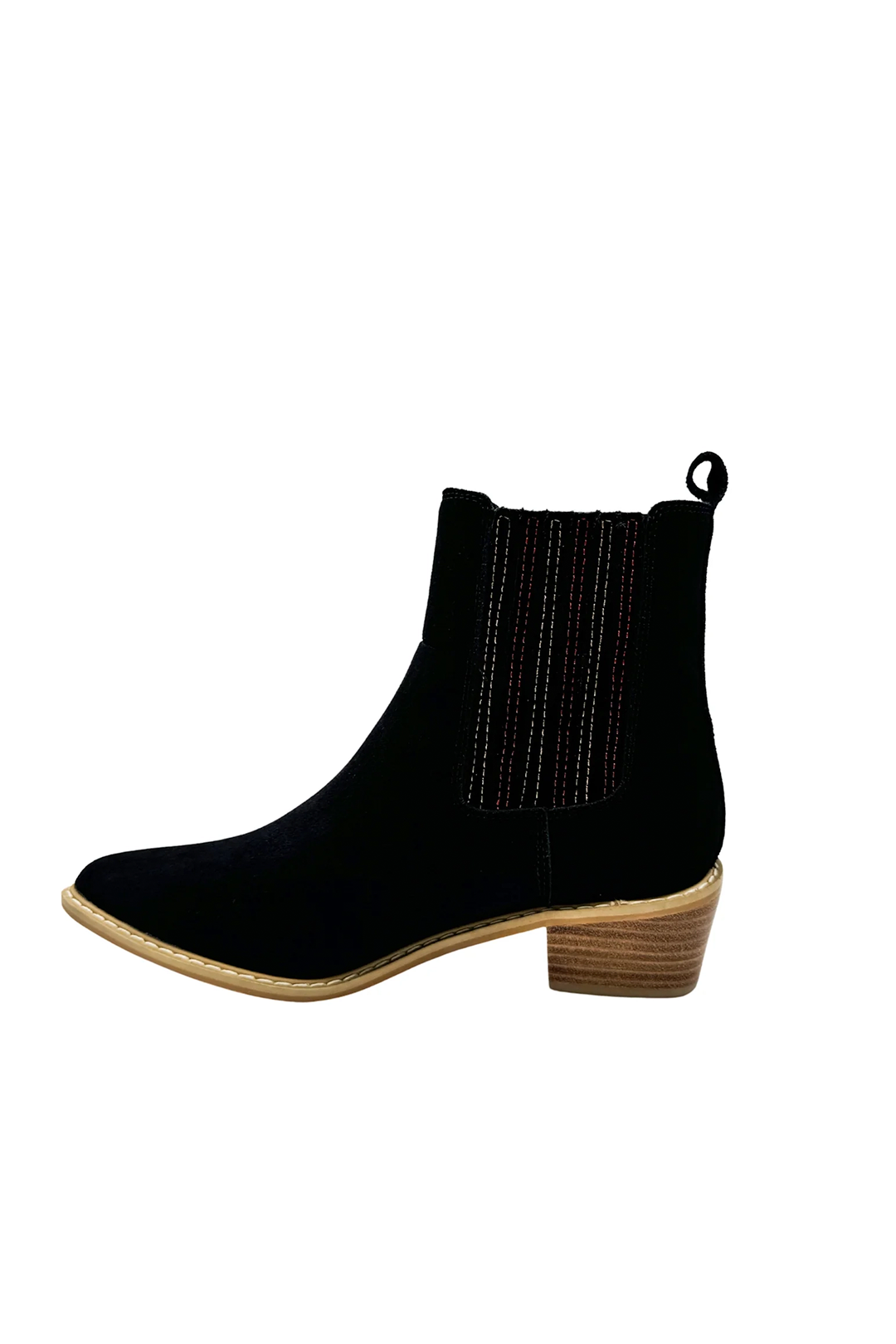 turing a sleek black finish, elastic side panels with subtle stitched detailing, and a sturdy stacked heel, the Leonor Boot offers both style and all-day wearability. It pairs beautifully with denim, trousers, dresses, and cozy knits — making it a true wardrobe staple for fall and winter.