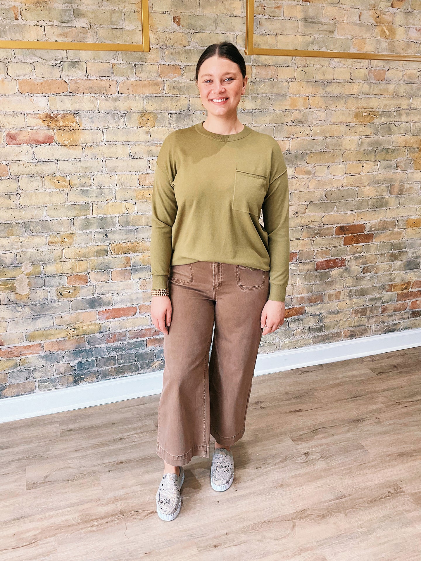 The Cynthia Sweater: your new must-have for comfy, effortless style! This sweater boasts an oversized fit for a relaxed look, while remaining lightweight for all-day comfort. With a convenient front pocket and trendy side slits, it's both practical and stylish. Perfect for cozy days and casual outings.