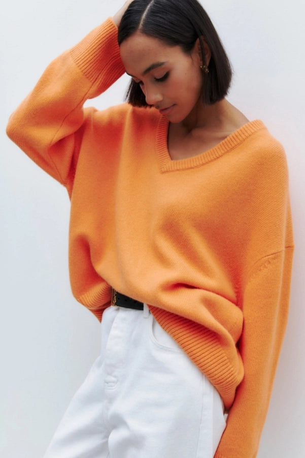 Meet Daisy, the ultimate Simple Long Sleeve V-Neck Pullover Sweater! Available in vibrant carrot and pink hues, and don't forget the classic black option for maximum coziness.